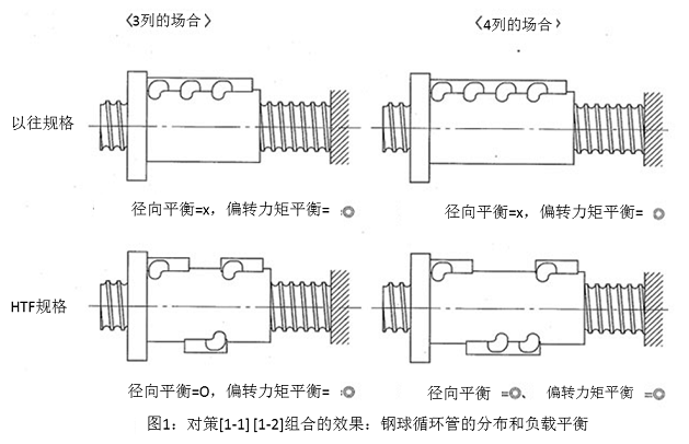通过将钢球循环管在轴向的分布设计为左右对称,达到了偏转力矩平衡。